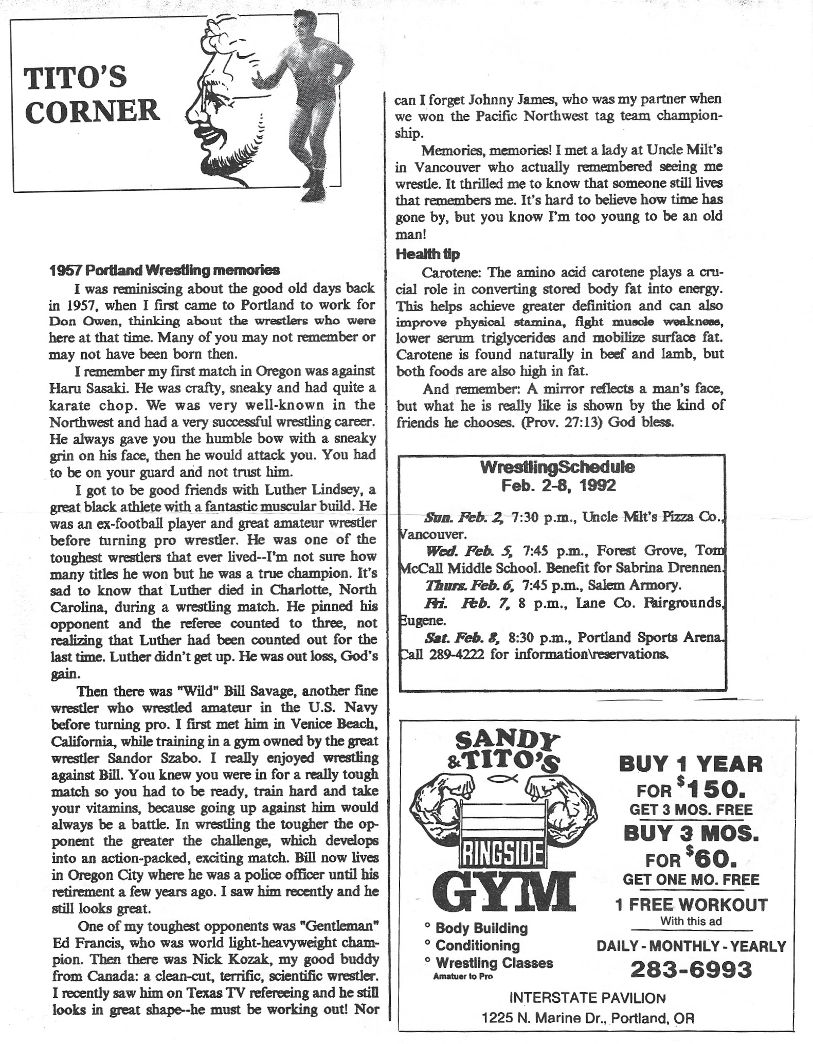 Portland Wrestling Program - February 1, 1992 - IT'S WAR!!!!